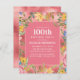 Convite Dourada rosa Amarelo Azul Floral 100º Aniversário