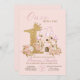 Convite Dourada rosa primeiro aniversario da Princesa do C