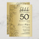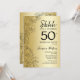 Dourada Surpresa 50º Convite de aniversário. Design Glam feminina com sotaques botânicos e letra de script de tipografia. Simples cartão de convite floral perfeito para uma festa surpresa na moda. Pode ser personalizado para qualquer idade. Impressos convites Zazzle ou download instantâneo de modelo digital.