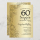 Dourada Surpresa 60º Convite de aniversário. Design de Glam feminina com folha de ouro falsa, sotaques botânicos e letra de script de tipografia. Simples cartão de convite floral perfeito para uma festa surpresa na moda. Pode ser personalizado para qualquer idade. Impressos convites Zazzle ou download instantâneo de modelo digital.