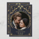 Ponha o tom para uma celebração mística. Este casamento inspirado no tarô salve a data com um círculo celeste com sua foto cercada por nuvens, luas e sóis, com um olhar radiante no topo. Projetado em ouro luxo e marinho para uma vibração mágica e inesquecível! NOTA: O ouro apresentado nesta design NÃO é folha de alumínio real.