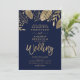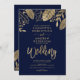 queda da tipografia do ouro deixa marinho convite de casamento azul com folhagem de ouro pintada à mão. O fundo vermelho é totalmente personalizável, perfeito para os casamentos elegantes do outono e chic.