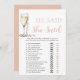 O "Pérolas Douradas e Prosecco que Ele Disse, Ela Disse Jogo" é uma adição deliciosa às suas festividades de chá de panela. Com pérolas de ouro elegantes e motores prosecco, esse jogo adiciona um toque de sofisticação ao evento. Os convidados gostarão de adivinhar quem disse o que enquanto compartilham histórias e memórias, fazer de uma experiência divertida e memorável para todos.