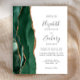 A borda esquerda deste elegante convite de casamento moderno apresenta uma esmeralda verde aquarela agate borda com falsa brilho dourado. O texto personalizável combina manuscrito, copperplate e fontes itálicas em cinzas de carvão em um fundo branco. O verso apresenta um design emerald verde e dourado.