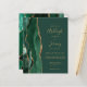 A borda esquerda deste elegante convite de casamento moderno apresenta uma esmeralda verde aquarela agate borda com falsa brilho dourado. O texto personalizável combina manuscrito dourado, copperplate e fontes itálicas em um fundo verde esmeralda. O verso apresenta um design emerald verde e dourado.