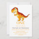 Dourado convite para o Dinossauro T Rex! Estou super animado em convidá-lo para uma celebração dinorica para o meu primeiro aniversario! Estamos a dar uma festa de dinossauro, e não seria o mesmo sem ti. Prepare-se para alguma diversão T-Rex e muitas atividades de dino-temática! Esperem muitas risadas, bolo, e talvez até alguns convites de aniversário de dinossauros para levar para casa como guardas. Avise-me se você conseguir. Ficaríamos felizes em celebrar este dia especial com você! Raios e aplausos,