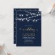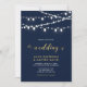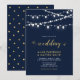 Celebre seu dia especial com este modelo de convite de casamento moderno e elegante. Este design apresenta belas luzes de corda e tipografia com um tema de cores dourado e azul marinho. Convites e suprimentos para festa correspondentes estão disponíveis na minha loja BaraBomDesign.