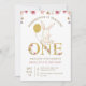 Convite Dourado Balão Flores Selvagens Algum primeiro aniv