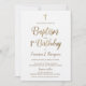 Celebre um marco especial com o Dourado Batismo Simples Cruz e Modelo de Convite Fotográfico primeiro aniversario! Com uma elegante cruz dourada, espaço para uma foto personalizada e texto personalizável, este convite é perfeito para anunciar a dupla celebração do seu filho com estilo.