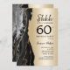 Preto e ouro agitam a surpresa do 60º convite de aniversário. Elegante design moderno com fundo de geode de mármore agate, fonte falsa de ouro brilhante e script de tipografia. Trendy convida o cartão perfeito para uma comemoração de dia das mulheres na moda. Impressos convites Zazzle ou modelo de impressão digital instantânea para download.