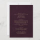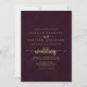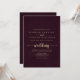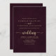 Esta caligrafia de ouro é perfeita para um casamento rústico. O design simples e elegante apresenta uma tipografia de rico e escrita dourada em fundo bordéus. Salve o papel, incluindo mais detalhes na parte traseira do convite em vez de em uma placa de gabinete separada.