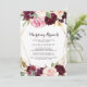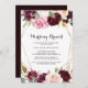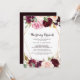 Este convite de brunch floral de burgundy dourada é perfeito para uma família simples e amigos no dia seguinte ao casamento. O design apresenta buquês de flores elegantes, verdes, esbranquiçados, roxos, vermelhos e burlões desenhados à mão, adorando quadros geométricos dourados, classe inspiradora e beleza.