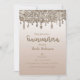 Convite Dourado Champanhe com Gotejo de Brilho Glam Quince