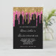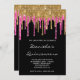 Um convite bonito para a fabulosa festa de festa de aniversário quincinera. A falso falso fuchsia cintilante, rosa quente e dourado pingos criados com gráficos de arte digitais contra preto sólido. Personalize o estilo de fonte, o tamanho, o espaçamento e a cor elegantes, conforme necessário. Convites de festa de aniversário personalizáveis. Concursos de gema e chic.