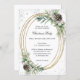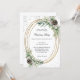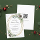 Um fundo branco. Uma estrutura de ouro falsa, decorada com cones, berros brancos e verde-pinheiro. Brilhante de prata, brilho. Personalize e adicione os detalhes. Texto preto. Código QR para o seu site para RSVP e detalhes do partido.