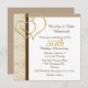 Elegante convite de festas de 50 anos de casamento feito em forma quadrada, com uma cor damasco bronzeada e branca, à esquerda e dois sotaques cardíacos de ouro. Personalize o texto marrom para o seu evento especial de 50 anos de casamento.