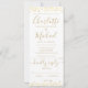 Um convite de casamento com nomes modernos de guião de assinatura e corações de ouro elegantes confetti. O convite inclui um cartão RSVP que pode ser interrompido e detalhes de informações de convidado. Projetado por Thisnotme©