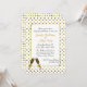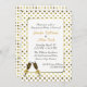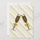 Convite chique da celebração da festa de noivado do casamento feito em um goldtone no fundo branco do teste padrão de bolinhas, com uma área de texto branca quadro goldtone. Os gráficos de dois vidros enchidos do champanhe decoram a parte inferior e a parte traseira do convite. Personalize todo o texto para seu evento especial.