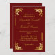 Este Convite de Casamento apresenta um fundo Borgonha sobre o qual estão peças de Faux Dourado Corner e a Tipografia Script sobre os detalhes da Cerimônia de Casamento. Parte do texto é personalizável. Por favor, use a "personalize esta modelo" de Zazzle para inserir suas informações sobre seu casamento. Se tiver alguma pergunta, por favor contacte-me através da minha loja Zazzle. Aproveite!