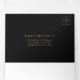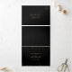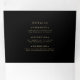 Este triplo convite de casamento de ouro é perfeito para um casamento elegante. O design apresenta um belo elemento de brilho dourado num fundo preto para embelezar o seu evento.