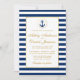 Convite Dourado de Stripes Azuis de Casamento Náutico - Script Dourado - Fundo Branco