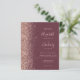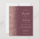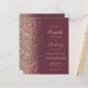 A borda esquerda deste elegante convite de casamento moderno apresenta uma borda falsa de ouro rosa. O texto personalizável combina manuscrito colorido cor branco de rosa pálido, manuscrito e fontes itálicas em um fundo burlando escuro. O lado inverso apresenta uma burgundy e uma design de ouro rosa.