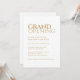 Elevem sua grande celebração de abertura com nosso Dourado Convite de Grande Abertura. Apresentando um simples design minimalista limpo com uma frente branca e uma tipografia elegante do ouro. A parte traseira apresenta um emblema de diamante dourado que pode ser personalizado com seu logotipo e espaço para seu site ou texto personalizado. O simples design moderno dá o tom perfeito para o grande dia de sua empresa. Simplesmente personalize com o nome da sua empresa, os detalhes do evento e as informações de RSVP para criar um convite memorável e sofisticado. Faça uma impressão duradoura com este design eterno.