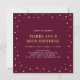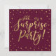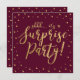 Celebre seu dia especial com este modelo na moda moderno convite de aniversário surpresa. Este design apresenta caligrafia texturizada de ouro cônico e confete em um fundo vermelho burgundy. Você pode personalizar o texto para qualquer aniversário ou evento. (21rua, 30, 40º, 50º, 60º, 70, 80, 90, 100º)