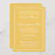 O texto sobre o tradicional ouro simples (amarelo-ouro, amarelo-daffodil) e o convite de casamento branco é perfeitamente personalizável. Para alterá-lo, use a opção personalizar. Para alterações mais abrangentes no convite, incluindo alterações na fonte, cor da fonte, tamanho da fonte ou posicionamento do texto, use a opção personalizar. Esta design de convite de casamento tradicional é adequada para um casamento no primavera, verão ou inverno. Embora atualmente personalizado para um casamento, esse convite também funcionaria bem para uma variedade de outras ocasiões especiais. Você decide. Tudo o que você precisa fazer é mudar o texto. Altere a aparência experimentando-a em qualquer um dos outros tipos de papel. Em algumas capas, isso mudará a cor de fundo. Você também pode alterar a cor de fundo de branco para qualquer outra cor usando a ferramenta de personalização. Simples, clássico, elegante e tradicional estilo de convite para casamento e redação. Entre em contato com o designer Wasootch se quiser que este convite seja feito em cores diferentes.