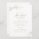 O chá de panela minimalista apresenta folhas botânicas ilustradas e de mão rústica e uma escrita de tendências moderna em ouro falso e excelente branco, simples e elegante para o casamento rústico de verão, casamento de jardim botânico primavera. Ver todas as peças correspondentes na coleção