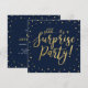 Celebre seu dia especial com este modelo de convite de aniversário surpresa marinho de ouro e . Este design apresenta caligrafia texturizada de ouro cônico e fundo de confetti. Você pode personalizar o texto para qualquer aniversário ou evento. (21rua, 30, 40º, 50º, 60º, 70, 80, 90, 100º)