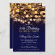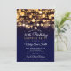 Design Surpresa Elegante de 30 com de Convite de aniversário Azul Dourado e Marinho, motif de Luzes e Estrelas Azuis, nome personalizado e data e texto adicional. Imprima sua família e amigos com este design de anúncio de na moda e aniversário clássico. Fácil de usar e fácil de personalizar.