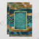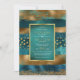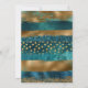Dourado e teal pinceladas de tinta e convite para casamento confetti. Esta bela design apresenta pinceladas em azul-lacrimogêneo e ouro e confete. Seu texto está em um quadro lacrimejado com borda dourada. É perfeito para um casamento no inverno.