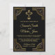 Encontrem seus hóspedes com este convite de casamento cristão dourado com uma elegante borda de ornamentado de ouro e cruz de ouro contra fundo negro. Basta adicionar os detalhes do seu evento neste modelo fácil de usar para torná-lo um convite de tipo único. Sacudir a placa para revelar um lindo triângulo dourado na parte traseira da placa. Este convite é totalmente personalizável. Todos os textos são editáveis e a cor de fundo pode ser facilmente alterada para quais melhores ajustados você pode fazer.
