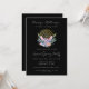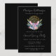 Dourado Evento Espiritual de Negócios Spa Psíquico do Mandala Pink Crystals Open House, grande convite de abertura com fundo negro. Design de aquarela mágica com mandala de ouro, cristais cor-de-rosa, penas, buquê de flor botânica com folhas e penas verdes. Perfeito para o seu negócio metafísico, esotérico, spa, terapeuta, curador de energia, tarô clínico e espiritual e psíquico. Texto pronto para suas informações.