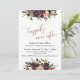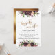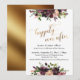 A parte superior e inferior deste convite temático de casamento elegante foram decorados com ramalhetes de flores em aquarela em tons de vermelho profundo, burgundy, Marsala, grená, pêssego e rosa suave. As palavras-chave "felizes para sempre" foram renderizadas em uma fonte de letra cursiva moderna e giratória e, em seguida, adornadas com um efeito de folha de ouro falso. Todo o restante do texto é editável e aparece em uma fonte serifada versátil que você pode alterar se desejar. No verso, coloquei um gráfico ombre de folha de ouro falso liso. Todas as camadas foram adicionadas separadamente e deixadas desbloqueadas para lhe dar o máximo controle de design; edite esta aparência tanto quanto precisar e não hesite em entrar em contato comigo se precisar de ajuda com o processo. // 56 //