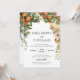 Bonito, elegante, moderno e boêmico convite para o seu casamento especial! A folhagem de folha de aquarela é borda em folhas verdes escuras e claras, com fruta de laranja natural e minúsculos quadros de flores no topo dos detalhes da celebração do casamento. Seus nomes são apresentados em fontes modernas no topo, e reverso da carta para revelar um padrão de folhagem de folha verde no verso. Personalize seus detalhes de casamento, data, local e muito mais na frente.