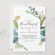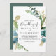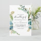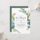 Este floral de ouro com verde tropical o casamento do convite é perfeito para um casamento de destino. O design apresenta predominantemente folhagem verde-aquosa pintada manualmente, acoplada a flores douradas, enfeitando uma elegante moldura geométrica.