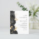 Este convite romântico para o casamento floral apresenta uma fronteira de flores pretas disparadas com folhagem de folhas falsas de ouro. Os nomes do casal aparecem na fonte de serif de cinza de carvão clássico, com o texto restante em itálico.