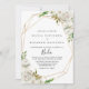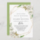 Este convite de casamento floral de pedras geométricas de ouro é perfeito para um casamento no inverno. A design apresenta belas peônias brancas desenhadas à mão, amontoadas em buquês imersos com botões arrojados e folhas verdes, enfeitando um quadro geométrico dourado.