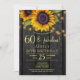 País russo 60º festa de aniversário de convite para na moda de modelo sobre madeira marrom-escura apresentando grandes buquês de girassol de ouro amarelo, cordas de luzes cintilantes e um falso roteiro de tipografia de ouro. +++++++++++++++++ Fácil de personalizar com seus detalhes! Você pode personalizá-lo alterando ainda mais as fontes e as cores das letras. ++++++++++++ O convite é adequado para jardins externos/jardins rústicos de quintal/churrasco de verão ou quedas de outono marco festas de aniversário