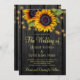Celebração de casamento na Rússia e convite para na moda de recepção modelo sobre fundo de madeira marrom-escura apresentando grandes buquês de girassol de ouro amarelo, cordas de luzes cintilantes e um falso roteiro de tipografia de ouro. +++++++++++++++++ Fácil de personalizar com seus detalhes! ++++++++ O convite é adequado para casamentos de celeiro de jardim ao ar livre. Download digital +++ disponível.