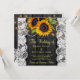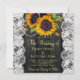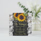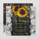 Celebração do casamento russo e na moda de recepção convite quadrado modelo no fundo de madeira marrom-escura apresentando grandes buquês de girassol de ouro amarelo, cordas de luzes cintilantes, bordas brancas de rendas, cordas de pérolas e um falso roteiro de tipografia de ouro. +++++++++++++++++ Fácil de personalizar com seus detalhes! Você pode personalizá-lo alterando ainda mais as fontes e as cores das letras. +++++++++++ O convite é adequado para jardins exteriores / quintais rústicos vintage casamentos inspirados tradicionais.