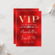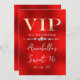 Este convite de festa personalizado apresenta um design VIP glamouroso em um fundo de textura vermelha. O título VIP é impresso em uma fonte estilo folha de ouro, seguido pelo título do evento. Uma faixa de diamantes separa o texto. O local e a hora da festa ou evento são impressos no verso. É perfeito para uma festa de aniversário, sweet 16, chá de noiva ou outra celebração elegante.