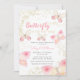 Convite Dourado Glitter Borboletas Rosa Chá de fraldas