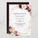 Este convite de festas de aniversário de 21 anos floral geométrico com brilho dourado é perfeito para uma celebração de aniversário moderna. O design apresenta buquês de flores elegantes, verdes, esbranquiçados, roxos, vermelhos e burlões desenhados à mão, adorando quadros geométricos dourados, classe inspiradora e beleza.