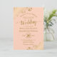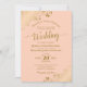Este belo convite para o casamento é simples, tradicional e elegante. Apresenta uma bela cor de laranja clara ou de pêssego de coral e design de ouro com fraldas de folhas de alumínio de ouro e uma formulação formal em que os pais da noiva estão fazendo o convite. A caligrafia com script de rico lhe dá um eterno e estilo clássico. Uma bela maneira de convidar seus amigos e família para fazer parte de seu dia especial.