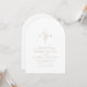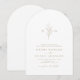 Mínimo convite para casamento de ouro falso e arco branco, com suas iniciais monogramadas e folhas botânicas ilustradas manualmente no topo, seus detalhes de evento são mostrados abaixo em um script moderno e em fontes clássicas. Simples e luxo. Excelente para casamento clássico moderno, casamento formal simples, casamento botânico elegante. Veja todas as peças correspondentes na coleção.