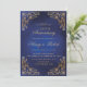Convite Dourado Ornament Border Blue 50º aniversário de ca