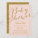 Convite Dourado para Chá de fraldas Rosa com Blush